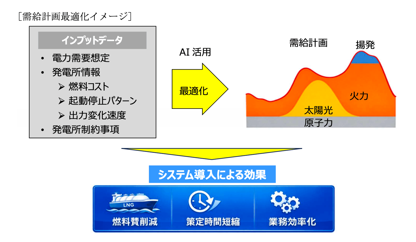 今回開発したシステムは AI を活用することで、より最適な需給計画を自動で策定できるため、更なる燃料費の削減による競争力強化と、策定時間の短縮・業務品質の均質化が可能となります。